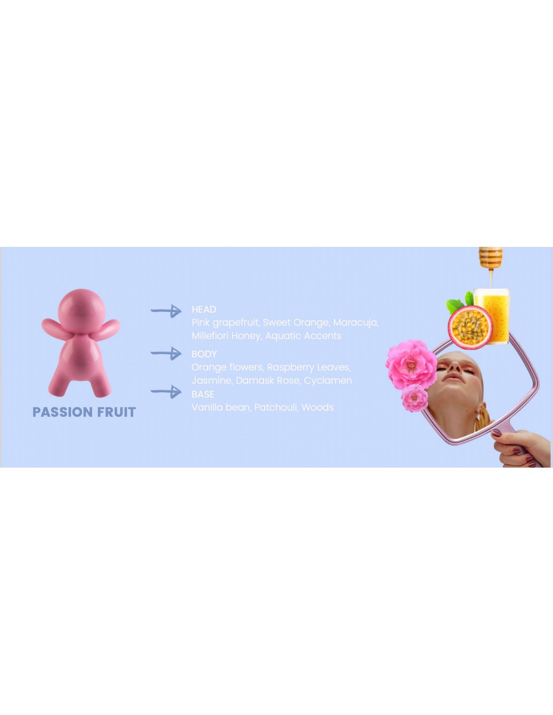 • size: 40mm x 55mm • colour: White • fragrance: Passion Fruit